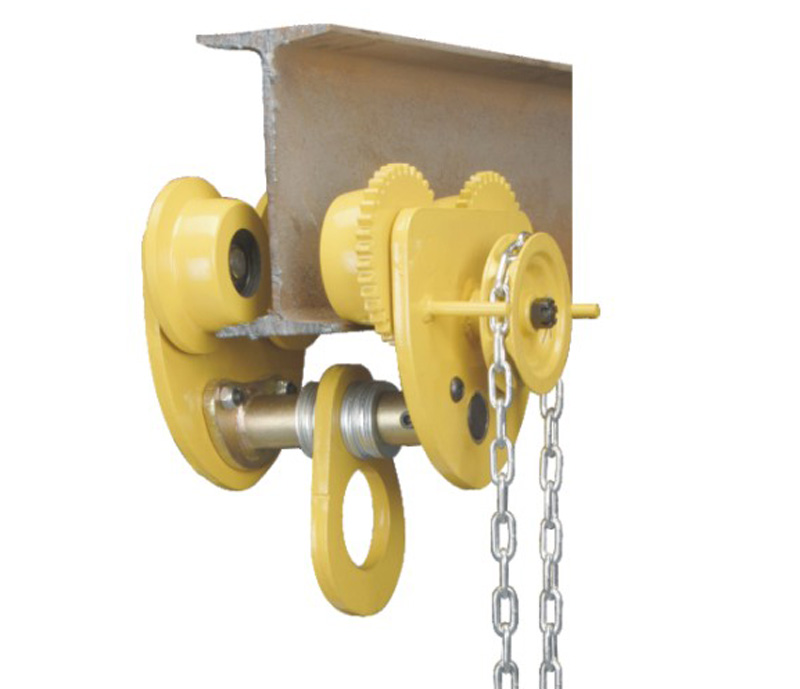 美國艾培爾GT-1型手推跑車是一種結(jié)構(gòu)簡單、操作方便、輕小型調(diào)運配套起重機械,以手推吊重物驅(qū)動,能自如地行走于工字鋼軌的下翼緣上,而且車輪輪緣間距可以按工字鋼軌道寬度要求調(diào)整,將手動葫蘆懸掛在行車下方,可組成手動起重運輸小車。其結(jié)構(gòu)設(shè)計緊湊精密,是凈空高度有限作業(yè)中的理想工具,裝有改進的安全防脫板,使用更加安全。