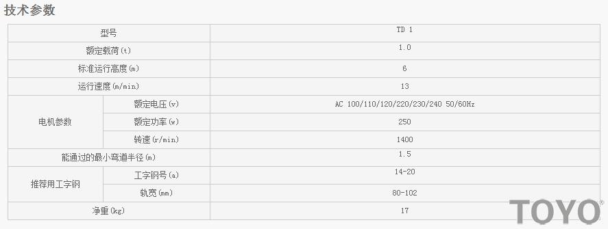 日本東洋TOYO TD1電動小車技術(shù)參數(shù):