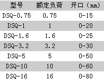 江蘇大力士DSQ鋼板起重鉗技術參數: