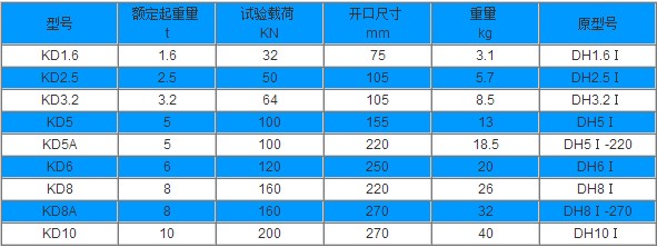 上海船廠KD型鋼板起重鉗技術參數(shù):