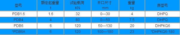 上海船廠PDB型鋼板起重鉗用途:水平吊運鋼板及鋼管構件。用法:四只配套使用,使用時須配備橫梁。安全系數:2倍破斷載荷:4倍