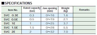日本世霸SVC立吊夾具以吊鋼板為主,吊的方向擴大,輕量型吊環不論被拉向何方,咬頭仍自由地朝向鋏具的方向,帶彈簧型鎮機構,無負荷狀態下咬頭也在緊交狀態。