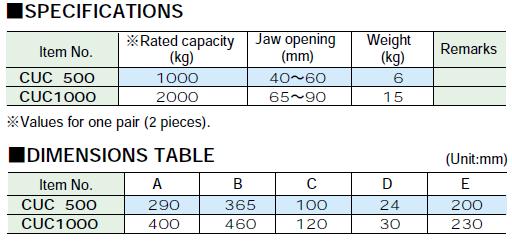 日本世霸有緣式U字鉤吊夾具技術參數: