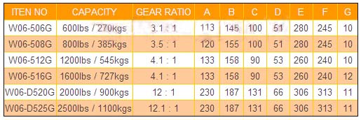 臺灣至光附剎車手搖絞盤的齒輪為實心構造,表面經過高強度電弧焊接處理,增強了產品的抗腐蝕性和耐磨性,齒輪與齒精確的鍥合,設有加強底座,使用性能優良可靠,大大提高了作業效率,設有三段控制爪,操作更安全可靠,自身帶有剎車裝置,便于操作。