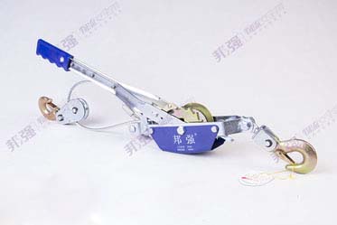 浙江邦強BQ1000R型牽引器是在架空線路敷設施工中作為拉緊導線用的,使用時先把牽引器上的鋼絲繩或鍍鋅鐵線松開,并固定在橫擔上,用夾線鉗夾住導線,然后扳動專用板手,由于棘爪的防逆轉作用,逐漸把鋼絲繩或鍍鋅鐵線繞在棘輪滾筒上,使導線收緊,主要應用于建筑、公路、橋梁、冶金、礦山、邊坡隧道、井道治理防護等基礎建設工程的機械設備。