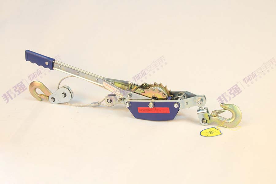 浙江邦強BQ2000R型牽引器是在架空線路敷設施工中作為拉緊導線用的,使用時先把牽引器上的鋼絲繩或鍍鋅鐵線松開,并固定在橫擔上,用夾線鉗夾住導線,然后扳動專用板手,由于棘爪的防逆轉作用,逐漸把鋼絲繩或鍍鋅鐵線繞在棘輪滾筒上,使導線收緊,主要應用于建筑、公路、橋梁、冶金、礦山、邊坡隧道、井道治理防護等基礎建設工程的機械設備。
