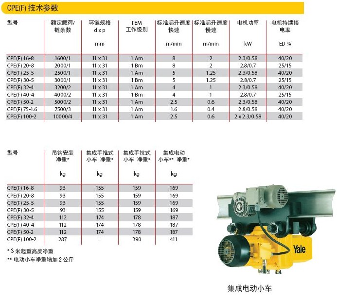 C-Star電動環(huán)鏈葫蘆吊鉤或集成小車式產(chǎn)品特性: