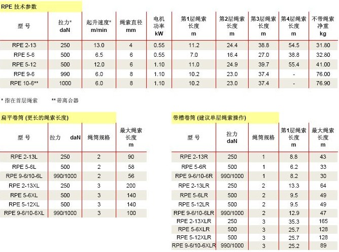 RPE型電動鋼絲繩絞盤: RPE 和 RPA型鋼絲繩絞盤采用高性能、高效和高安全性的設計,提供更多優勢和選項。RPE 和 RPA的緊湊實用立方體設計和通用鋼索使其可在任一位置應用并且有力地提升或拉動重物。根據DIN 15020 標準設計,工作級別為1Bm。