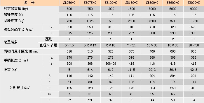 浙江手牌SB-C型手扳葫蘆產品介紹: