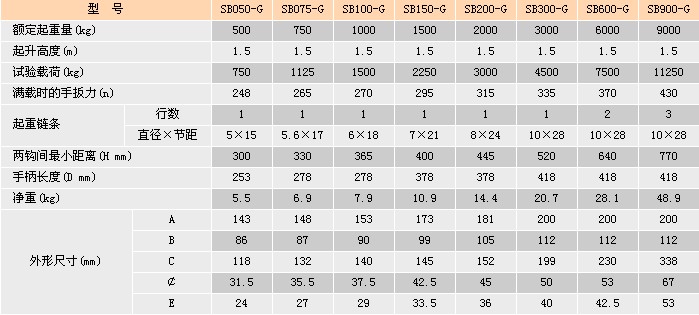 浙江手牌SB-G型手扳葫蘆技術參數: