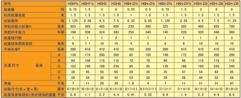 浙江“雙鴿”牌HSH型系列手扳葫蘆是我公司傳統生產的優質產品,具有設計合理,結構先進,機體強度高,使用安全可靠,維護簡便,經久耐用等優點。可廣泛應用于造船、電力、運輸、建筑、礦山等部門的設備安裝、物體起吊、機件牽引,尤其適用于狹小的工作場所、野外、高空作業和不同角度的牽引,是一種高效,多用途手動牽引、起重機械。
