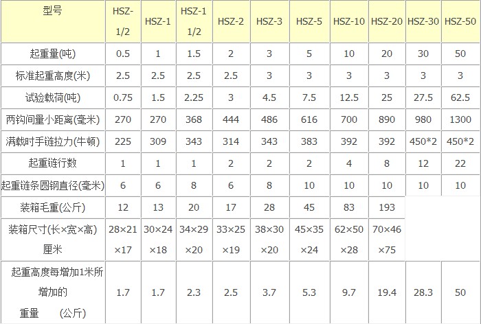 HSZ-CD型雙軸承手拉葫蘆簡介: HSZ-CD型雙軸承手拉葫蘆產品機構更合理,體積小,是一種使用廣泛、攜帶方便的手動起重機械,尤其在露天及無電源的情況下更能顯示其特點。