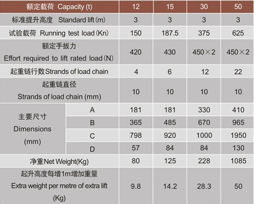 HSZ型50T手拉葫蘆標(biāo)準(zhǔn)的起升高度為3m,起重鏈條直徑為10m,起重鏈行數(shù)根據(jù)額定載荷的不斷增加而增加,是一款不可多得的起重牽引工具。