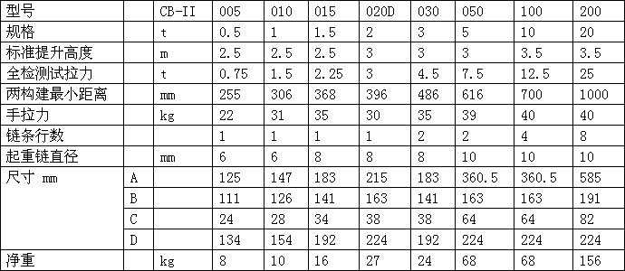 美國艾培爾 CB-2 手拉葫蘆 技術(shù)參數(shù)表如下: