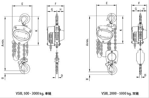 額定載荷 500 - 5000 公斤 VS III 型手拉環鏈葫蘆是耶魯最新設計并引進的手拉環鏈葫蘆。改進的導鏈機構防震、防卡,從而使鏈條運行更平滑。高質量的軸承,變速器和鏈槽保證操作更平穩。