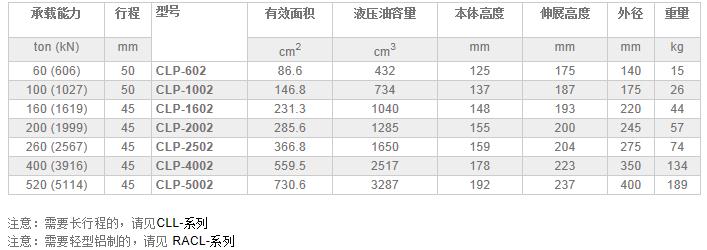 CLP系列薄型螺母鎖定液壓油缸技術參數: