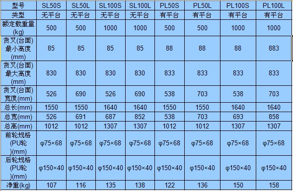 無錫虎力PL型腳踏剪式升高液壓搬運(yùn)(平臺(tái))車技術(shù)參數(shù):