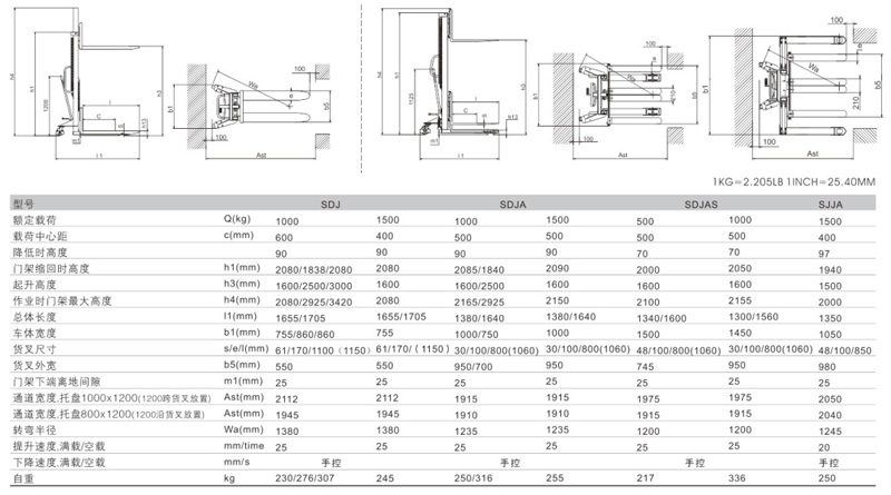 浙江西林SDJAS500/SDJAS1000叉車技術參數:
