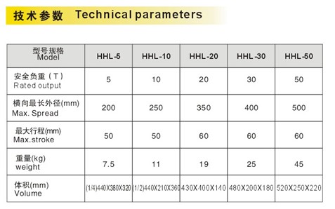 玉環環滬HHL-5型液壓拉馬技術參數: