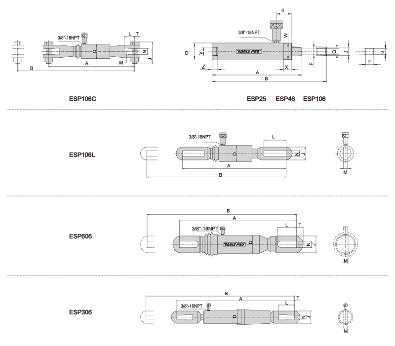 美國(guó)EAGLE ESP拉式液壓缸技術(shù)參數(shù):