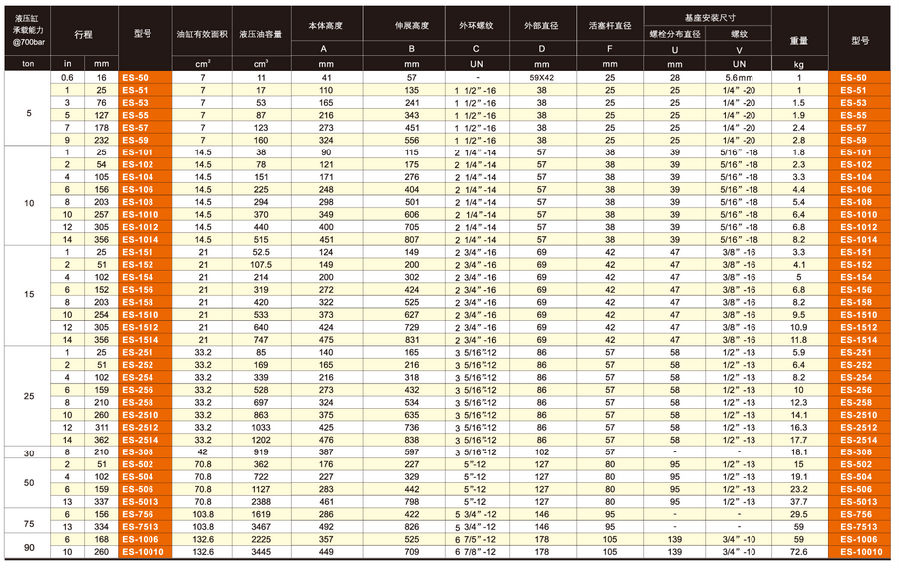 美國EAGLE ES/單作用通用液壓缸技術參數: